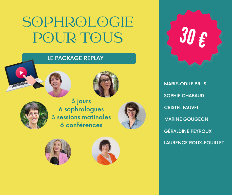 Vous retrouverez des sophrologues passionnées : Marie-Odile Brus, Géraldine Peyroux, Marine Gougeon, Cristel Fauvel et bien sûr Laurence Roux-Fouillet et moi !